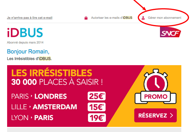 IDBus l’a compris : un lien de gestion d’abonnement trône en haut à droite, accessible d’un coup d’œil.